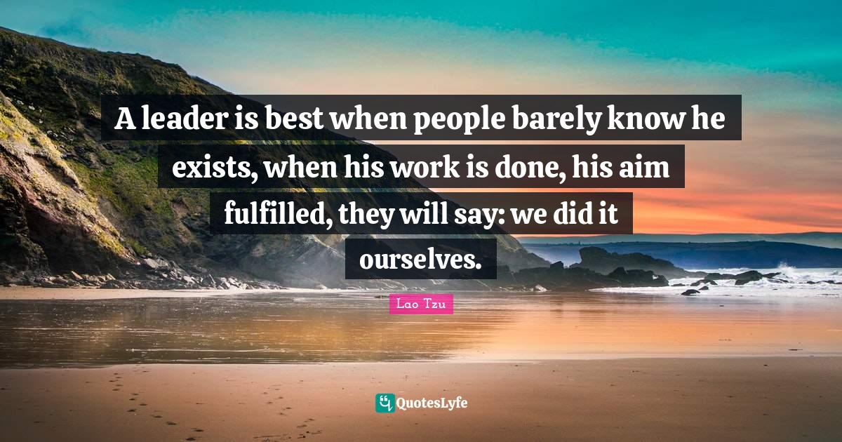 The Best Of All Leaders Is The One Who Helps People So That Eventually Quote By Lao Tzu Quoteslyfe from www.quoteslyfe.com Lao tzu quotes are world famous and appreciated by a lot of people. According to history, lao tzu is said to have been a record keeper in the court of the central chinese zhou dynasty in the 6th century b.c. The reason why rivers and seas receive the homage of a hundred mountain streams is that they keep below them. Top 10 lao tzu quotes. Often seen as a text about leadership and management. Lao tzu quotes on leadership. He who does his duty as his own nature reveals it, never sins. laz tzu quotes on patience. The best of lao tzu quotes, as voted by quotefancy readers.